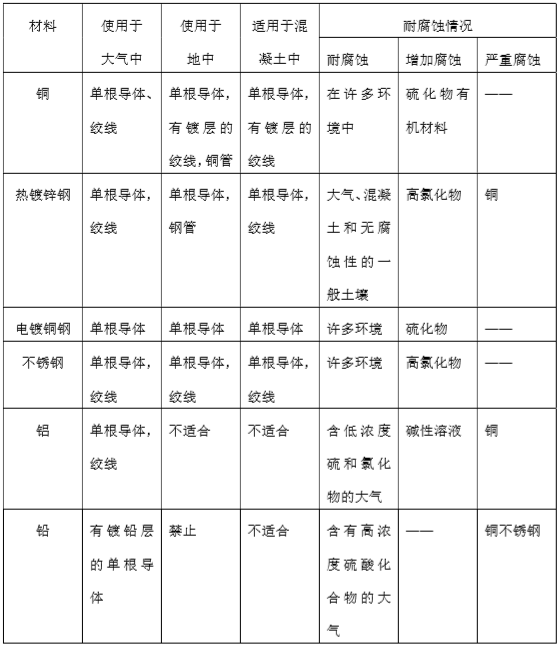 防雷接地的材料要求